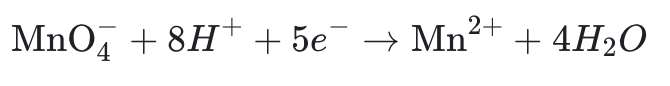 Écrire la demi-équation électronique de réduction du couple MnO₄⁻/Mn²⁺ en milieu acide.